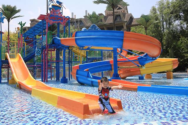 酒店是典型的度假风格,开放式大堂中有很多亲子设施、小朋友一到酒店就非常开心。