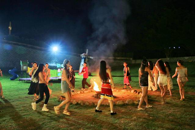 夜幕降临之后,草坪上的篝火晚会开始了,穿着民族服饰的小哥哥小姐姐们热情地表演歌舞和杂技,让人大开眼界。