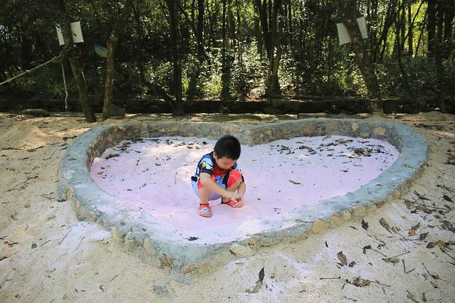 五色湖旁边,有两个粉色爱心沙池,超级美丽,别说小孩子,就连成年人看到,都想第一时间冲进去,拥抱这浪漫的沙滩。