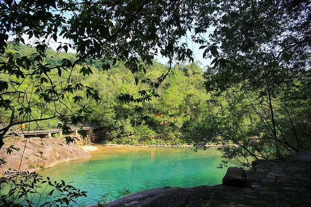 穿越瀑布飞拉达,可以来到山顶的岭南五色湖,在阳光的折射下,这里的湖水在一天中不断变化,真正的五光十色,美极了。