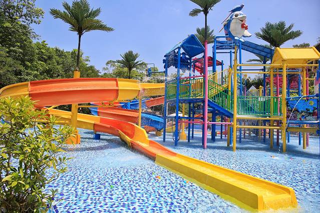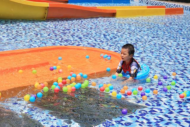 养生温泉区旁边的亲子水上乐园是小朋友最喜欢的地方,占地面积超级大,有炫酷冲浪池、漂流河道、游泳池、儿童波波池等,是夏日玩水消暑的首选。
