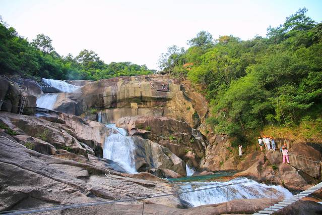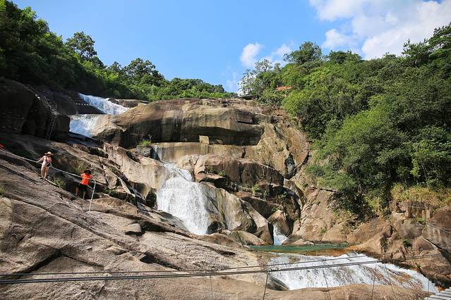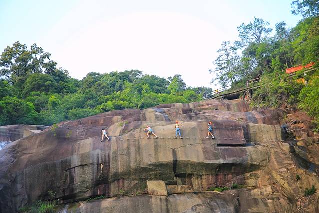 瀑布的飞拉达项目充分利用峡谷空间及瀑布环境的优势,设置了攀岩线路,攀爬高度88米,总长达200米,由西藏桥、绝壁天梯、悬空栈道、天空之桥、仙姑沐浴池等多个惊险路段组成,线路蜿蜒曲折,美景近在眼前。