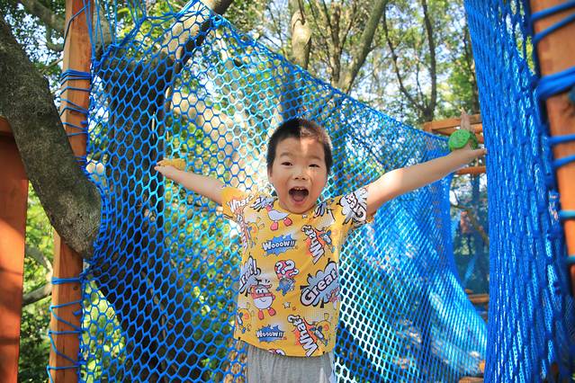 继续沿着温泉区的阶梯而上,在山顶有一个充满野趣的空中乐园,树屋、吊桥都是小朋友喜欢的元素,挑战自己可以从这里开始~