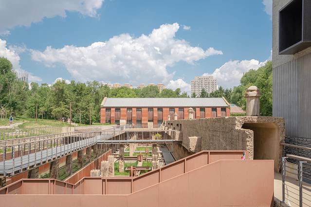 长春水文化生态园曾为长春市的老净水厂,因其保留着弥足珍贵的工业遗迹以及保护完好的植被等设施,故将其重新设计与施工;利用老旧的净水设备重塑艺术景观,有效地保护了生态资源,也展现了城市的生态活力。