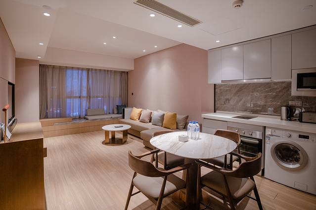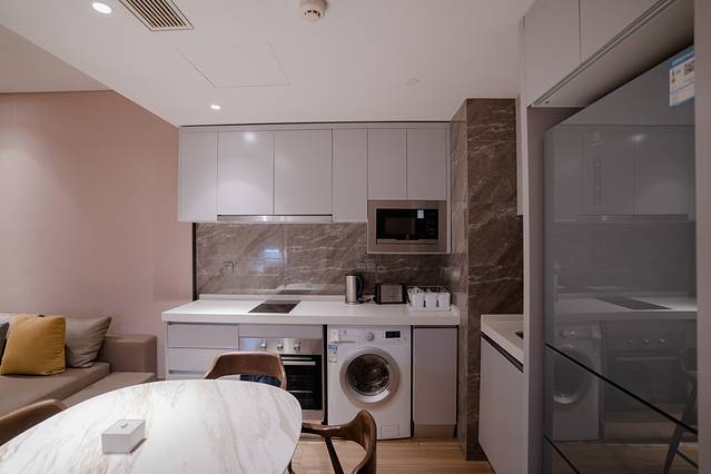 客房内配备了伊莱克斯洗衣机、冰箱,进口餐具,双立人锅具,JBL音响,艾珀利斯洗护套装,对于住多天的小伙伴来说,真的太方便啦。