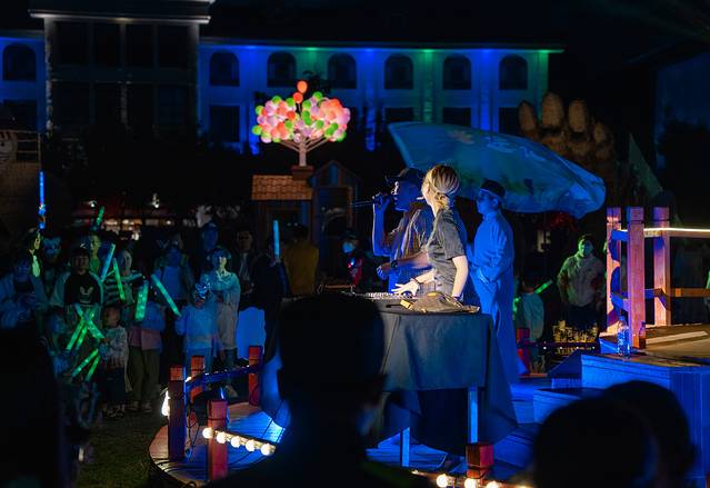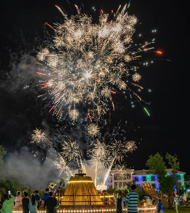 夜晚的莲花岛真正进入了狂欢夜,除了有沉浸式演出,还有草坪篝火晚会,晚会结束后再看一场璀璨烟花秀才是打开它的正确方式。