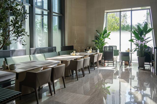 酒店提供24小时前台接待,就算点了外卖也有机器人递送,在大堂等待之时还有免费现磨咖啡,新鲜柠檬水,饼干等供享用,如果你是茶爱好者,那么大堂的进口茶具就派上用场了,在这里随时可以坐下来享受一杯茶。