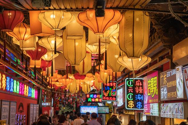 臭豆腐、东北卷饼、烤肉串、火爆大鱿鱼、锅包肉、火鸡面、炭烤生蚝、水果捞、火锅串等,应有尽有,在这里只会感受到浓浓的烟火气息和人声鼎沸的氛围。