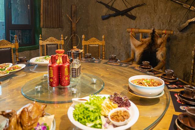推荐菜品:山寨大拉皮、粮台蘸酱菜、老酒醉四样、特色烤梨、大炮头手撕鸡,压寨牛骨髓等等