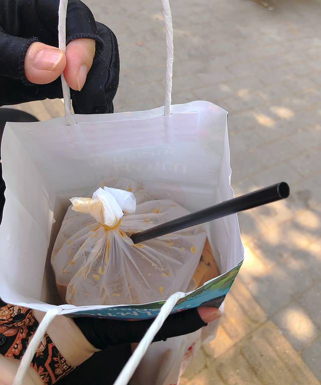 PS:外层是极薄的饼皮,内陷是软糯的紫米