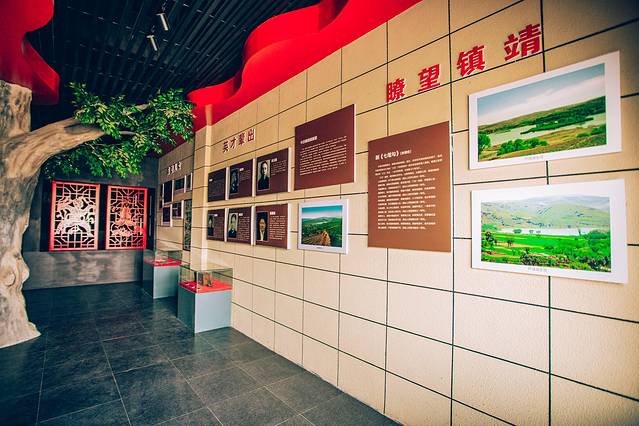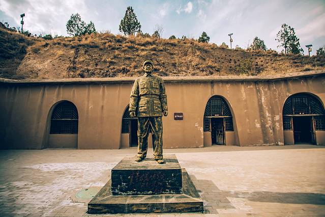 在位于镇靖堡西侧的山坡上,惠中权故居巍然矗立,券门上方的红星格外显眼,台阶直达故居门外。这里不仅是惠中权故居,也是中共靖边县委旧址,充满着浓厚的红色文化氛围和记忆。拾阶而上,进入小院,身着军装的惠中权雕塑威严肃穆;底座上毛主席亲笔题词的“实事求是,不尚空谈”八个大字诉说着红色精神;每一孔窑洞都镌刻着岁月的痕迹……通过一幅幅珍贵的历史图片和一段段感人至深的文字抚触历史,仿佛又回到了那段风云激荡的岁月。
