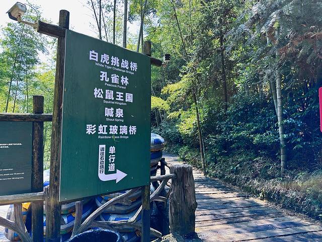 有高空秋千、青龙玻璃水滑道、彩虹玻璃桥、喊泉、白虎挑战桥、孔雀林、松鼠王国、还有国内首条轨道枕木栈道…亲子游挺适合的~