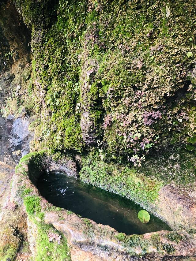 栈道边上,山壁流下的泉水。