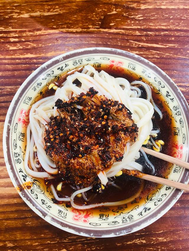 还好,时间还够到市区去吃一次安康有名的地方小吃-蒸面,跟着导航,坐车到鼓楼区,找到了这家黄家蒸面。