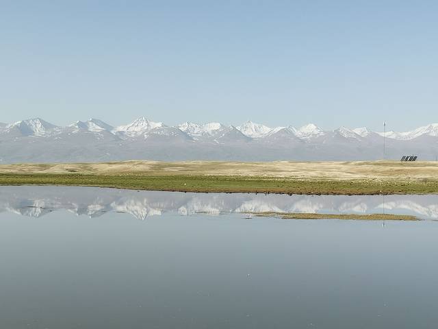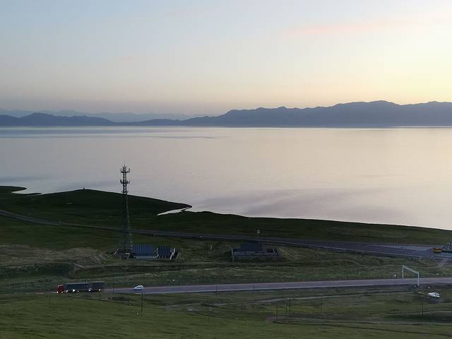 乌鲁木齐到博州(6-7小时车程),怎么都比不得伊宁去博州(2.5小时车程)那么近。早上8点半吃早餐,9点出发,下午5点才到赛里木湖,湖水对面是融化了很多的雪山,正对着拍照,人脸是黑黑的。