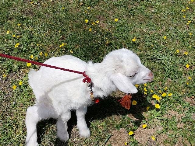 刚坐上区间车的时候,山有点秃秃的,草也不太绿,光线是灰蒙蒙的。到鲜花台才有隐隐约约的黄花,花多的一面背光,有牧民抱着小羊羔问要不要拍照。小心翼翼的抱着拍了几张,都是出生才几天的小羊,5块钱一个人。