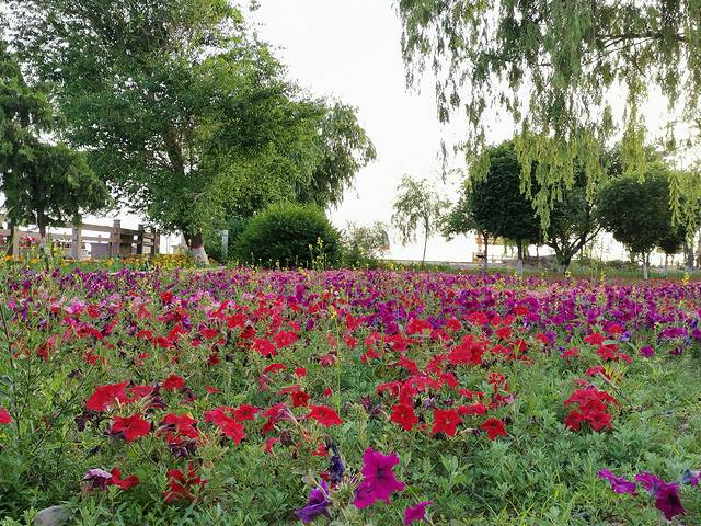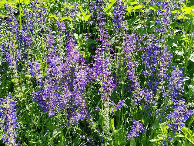 晚上10点多天还没黑,酒店旁边有很多花花,各色玫瑰开得妖艳,还有一片鼠尾草。