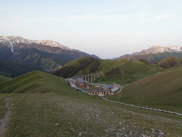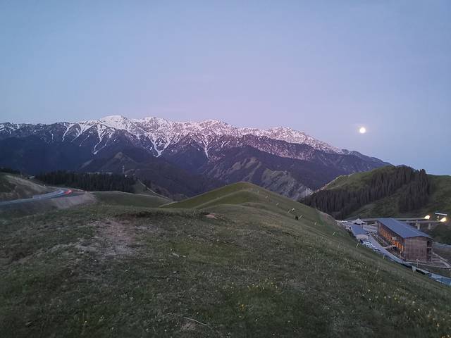 晚上9点多到果子沟,这边的雪山看起来很近很近,天还很亮堂。小太阳分完毡房发了一次性床单,我和同住的4个西安姐妹吃完饭,躺在雅雅和廉洁中间的时候才发现,因为毡房离大马路太近,每一次车辆经过,都能清晰的感受到那种辗压,和地震有雷同的功效,很难说服自己入眠。