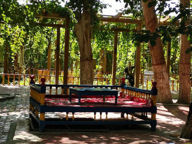 吐鲁番的夏天,把火洲的名声真实而热烈的展示着。热浪扑面而来,跟被架在火炉上一样。在老坎儿井门口吃了饭,走在幽长的地下通道,跟着小太阳了解了坎儿井的竖井口、暗渠、明渠之后,摸了一下渠里的水,好像也没有很冰凉。