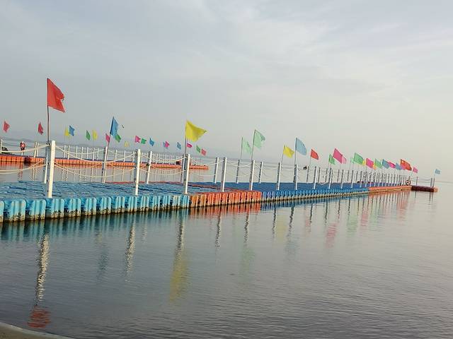 沙滩看起来冷冷清清,浮桥跟巴里坤湖很像,几个人下去看鱼游来游去,几个人在拍日落和剪影,几个人在喝咖啡,几个人在放空,我在吐槽。