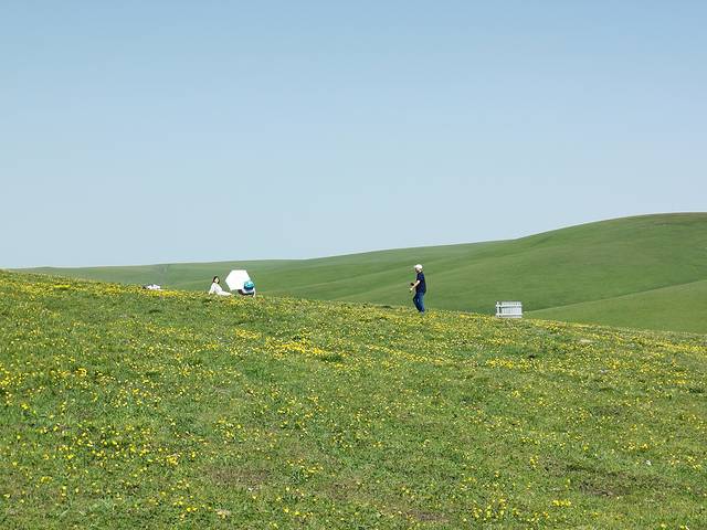 因为禁牧,没有看到成群的羊,但很多停靠点有毡房,也点缀了黄的绿的草地,人比想象的其实多一些。不过每个停靠点拍拍,又散开去,也并没有拥挤。