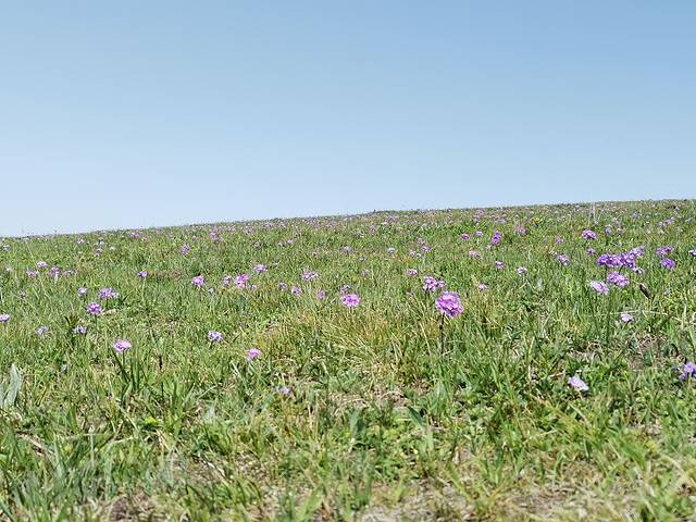 鲜花台马路对面有一个围起来的骑马的地方,后来才发现是草原相对很美的一片。台阶爬得很喘,跟着小太阳一路跌跌撞撞,总算看见了报春花。趴着坐着站着,不能免俗的拍。