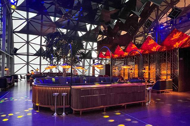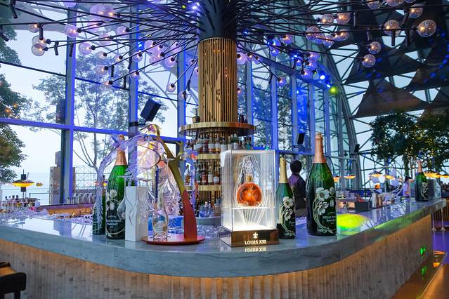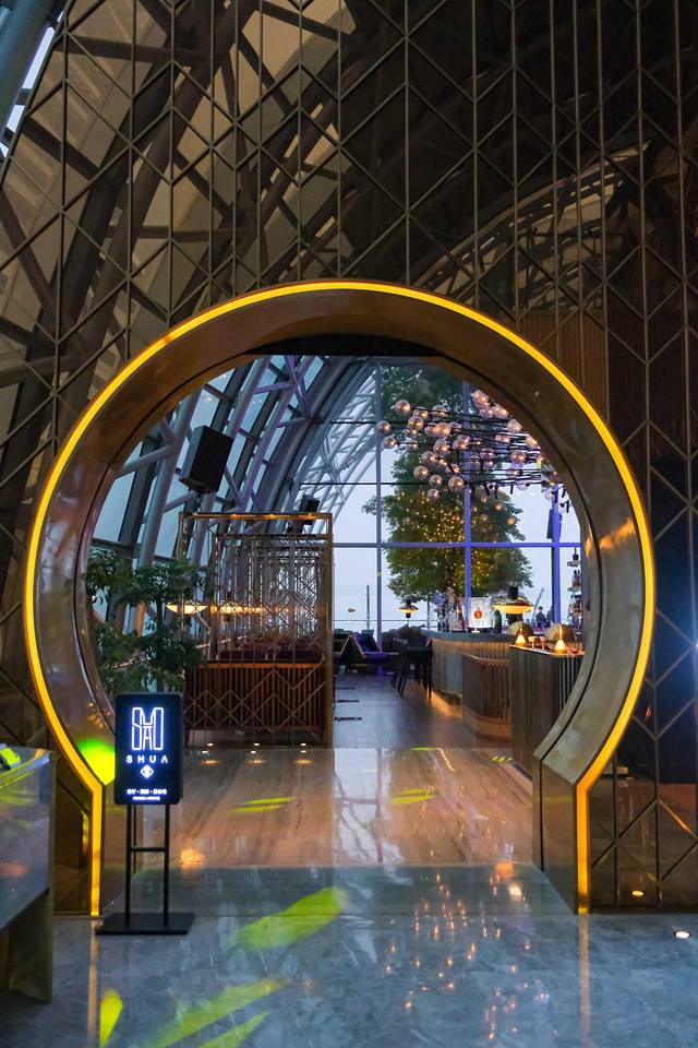 云中的霓虹璀璨,点上一杯特调的pina colada,与好友一起畅聊,音乐,火腿,生蚝,香槟陪伴,这里容得下浮世的喧嚣,也藏的住片刻的宁静。