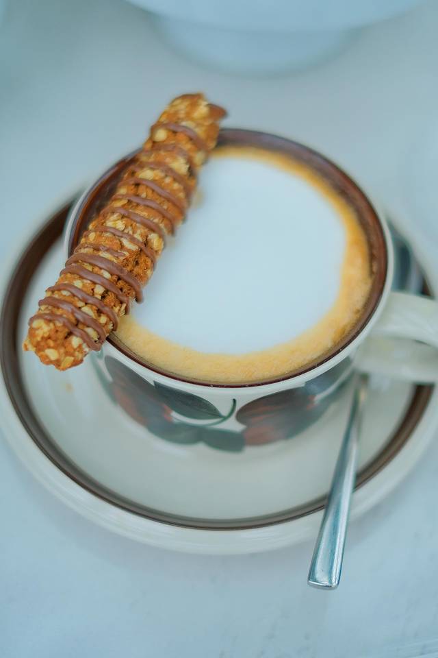 二杯特饮,是黑白层次分明,可食用碳粉制作的绵密奶泡,配着椰奶和黑芝麻的风味;