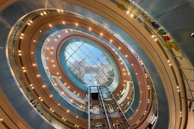 行走在水晶连廊脊背之上的悬空步道之中,除去透明玻璃的遮挡,360度全景欣赏城市景观,跟城市来一场亲密接触!