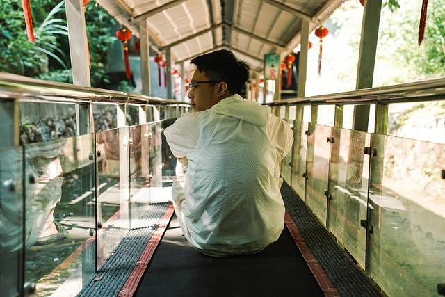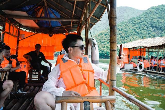 虽然玩过很多漂流,但是竹筏漂流倒是第一次,不同于往日的手动,这个是有发动机控速的,一人一个竹板凳,竹筏始进湖面,清风徐徐别有一番风味,尽情体验桃源式的休闲生活。