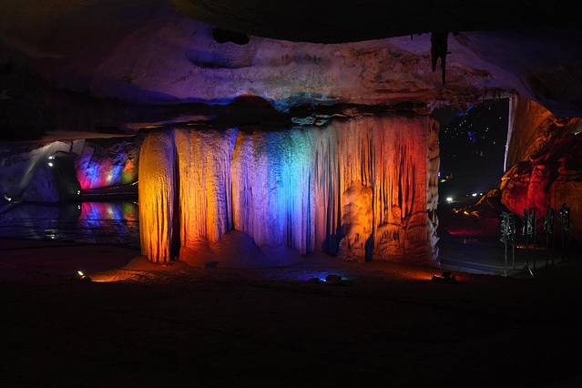 洞中最大的钟乳石“擎天玉柱”高达20多米,在氛围灯光的加持下真的很壮观,和朋友同行的还可以制造点恐怖氛围吓吓对方。