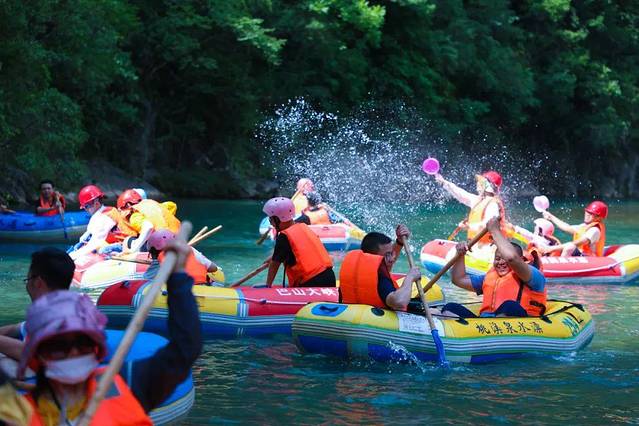 要说夏日的快乐源泉那必定是桃溪谷漂流了,从桃溪人家沿着溪水顺流而下,一路激流险滩密布,超刺激!
