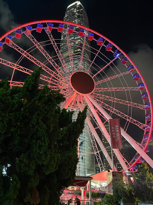 一下缆车直接走道就会连接走进一栋大楼,这栋楼你下意识就会跟着在里面逛吃,但是吃的也没几家,紧接着上楼顶去那个什么观光台看夜景,但是索性我们在某书做了攻略,说出这栋楼走一条“卢吉道”,那边的夜景不用钱呀!而且不用排队啊!于是在3楼广场我们找到了出口终于出了那栋楼才到的楼上的这个广场台!真的是出口从最底层找到了最高层,很艰辛感觉,因为根本没有指示牌。