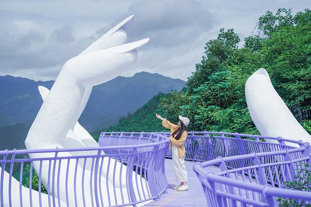 紫绫纤手这个打卡地同样也是一个不错的选择!两只巨大的手掌托起的紫色步道在森林中展开,如果有条件的话从空中俯瞰,你会发现两只手像是捧着一条紫色缎带一样,有种别样的美感。
