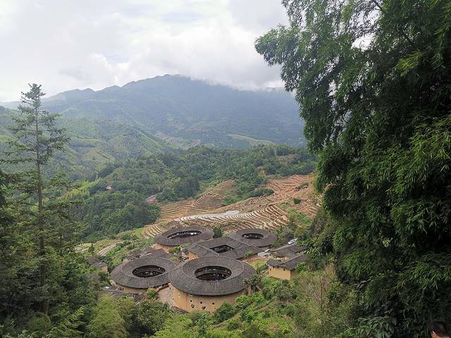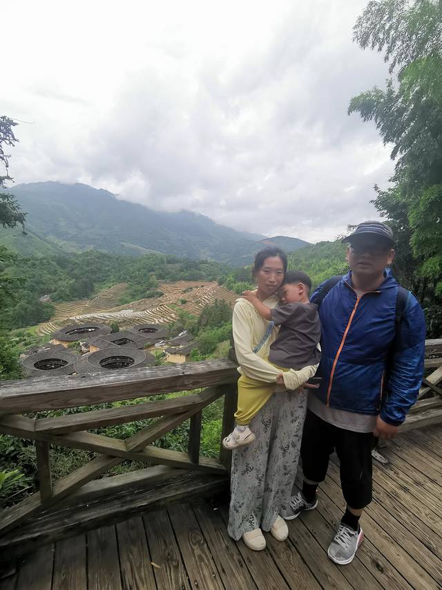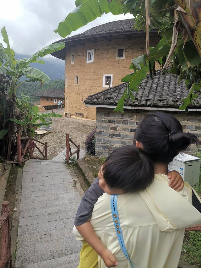 6月8日,早上7点多起来吃饭,然后给车加满油,出发前往漳州土楼,带小朋友去土楼最推荐的还是自驾,不用赶时间,而且也不贵三大一小也就500(我去的时候网上有优惠票,两个景点收一个景点钱)上午10点多到达田螺坑俗称四菜一汤,我们直接开到观景台,然后在走下去。