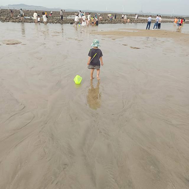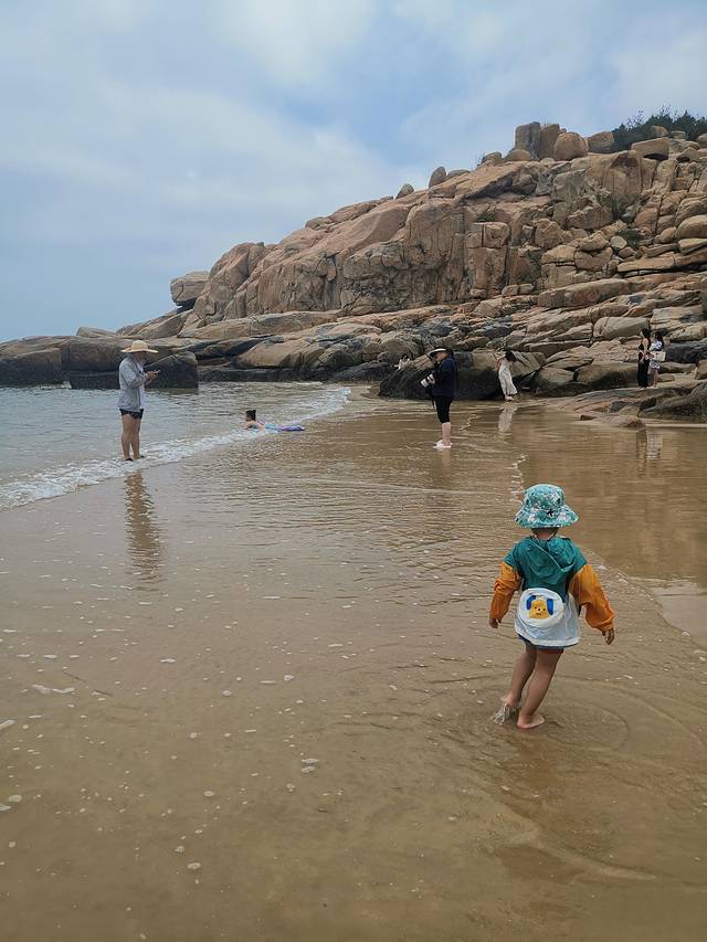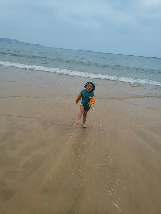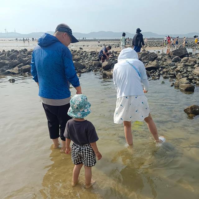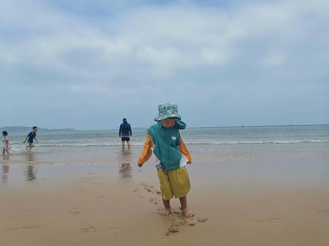 下午2点就往码头出发了,带小朋友的话一天都走到的话有点累,一定要穿舒服合脚的鞋子,我脚都磨出泡了,在到码头前带毛豆儿在沙滩玩玩水。