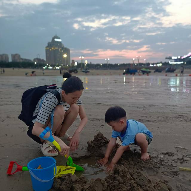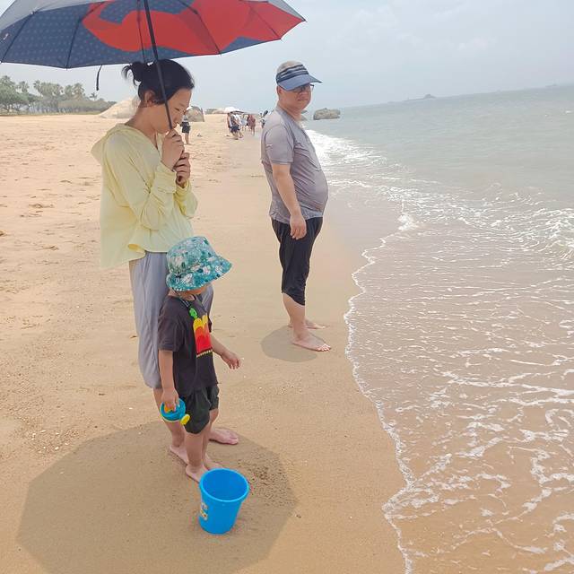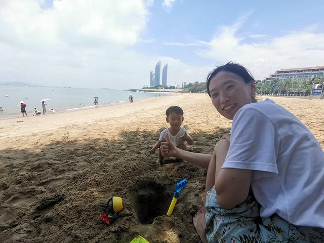 中午11点多到达了白城沙滩,我觉得在厦门沙滩中算很好的,景色漂亮、沙子细腻还不深,还有小鱼可以捞,还能挖沙就是天太热,带娃可以在这多玩一会。
