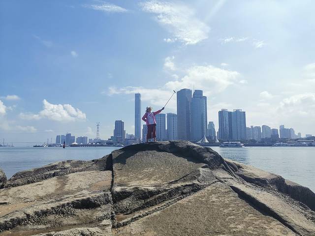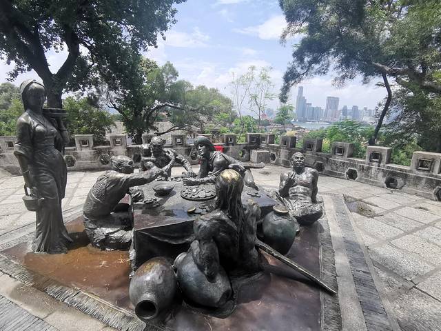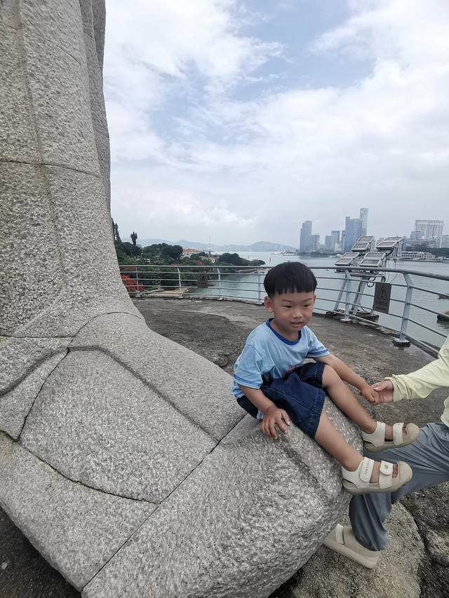 在雕像上眺望厦门岛