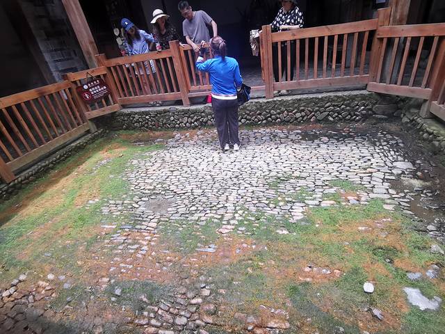 土楼是建在沼泽上,导游演示地是软和的。