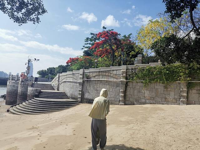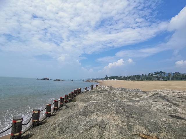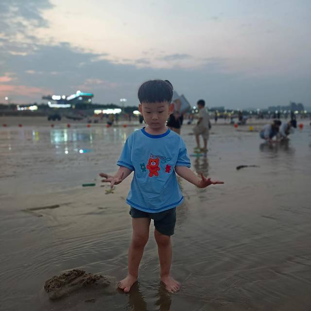 下午3点抵达旅店,有个包忘记在网约车上了,花钱给送回来的,旅店的空调还不好使了,修完晚上又坏了,晚上给我们又找了一家旅店,住宿费还退给我们了,还可以。晚上6点多到达龙凤头沙滩,广场很大,人很多,很热闹,沙滩沙子很细,水不是很深,浪还大是福建之行很好的沙滩了,推荐。