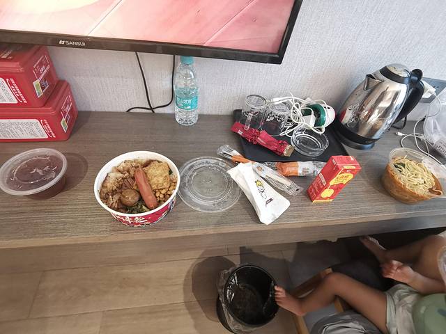 机场到市内还必须走高速,打车时需要注意。下午1点多到旅店,外面热死人啊,2点吃午饭,叫的外卖猪脚饭和沙茶面味道一般可能是饭店做的不好。