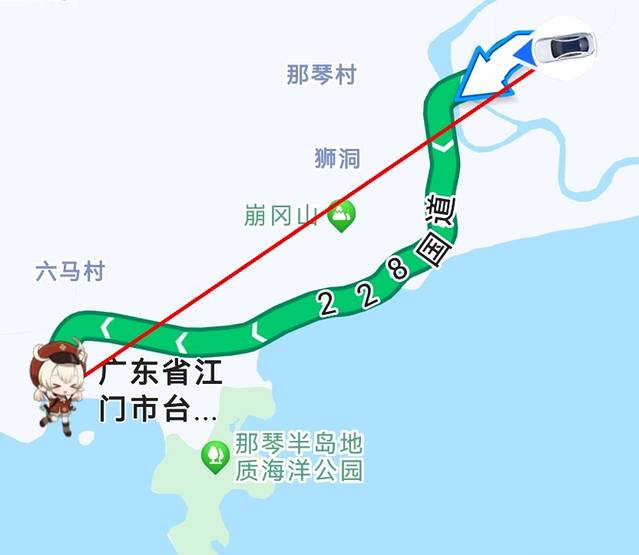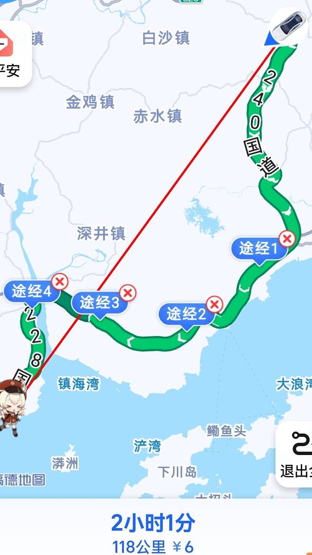 全程2.5h。大巴行驶在国道上,摇摇晃晃,一路经过端芬、广海、海晏、北陡四镇。景色也还不错。