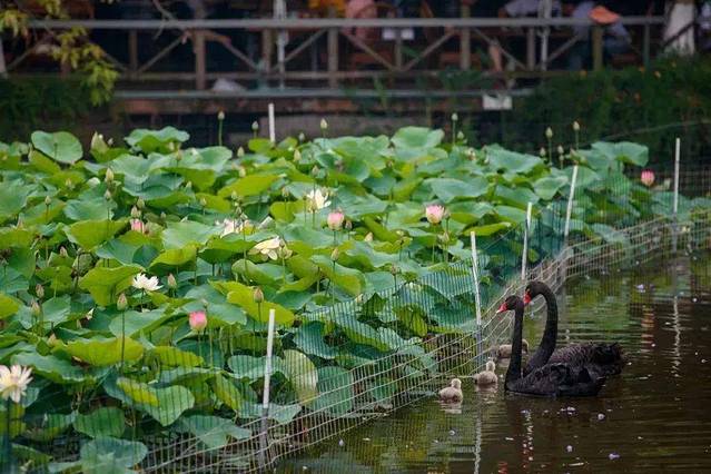 地铁1号线尽头、南三环出发驾车40min就能到,舞月荷花被称为“天府新区最大的荷花景区”。500亩的荷花池塘上,粉白相间的荷花亭亭玉立、绿油油的荷叶静谧生长,在市区内能享受到如此清幽的美景,属实难得。