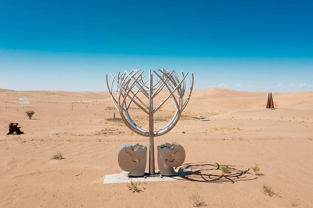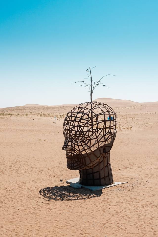 相比较而言,民勤苏武沙漠景区的沙子,来得就更加纯粹一些了。这里汇聚了132件中外雕塑大师的作品,件件动人,件件都有着故事,也透着巧思,无论是单独拍摄,还是人物入镜,都会变得极有趣味。