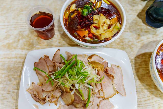 武威美食与三有关,三套车,三泡台,名字都很直给。三套车名字的由来,还跟左宗棠将军有关,由凉州行面、卤肉和冰糖茯茶组成,茶水可以无限续杯。三泡台可以根据自己的口味随意调制,既有茶的香,又有大枣、桂圆和冰糖带来的香甜,解油解腻。