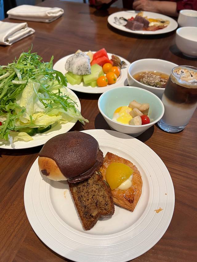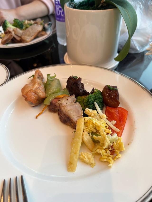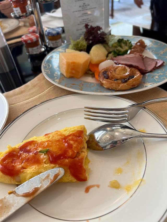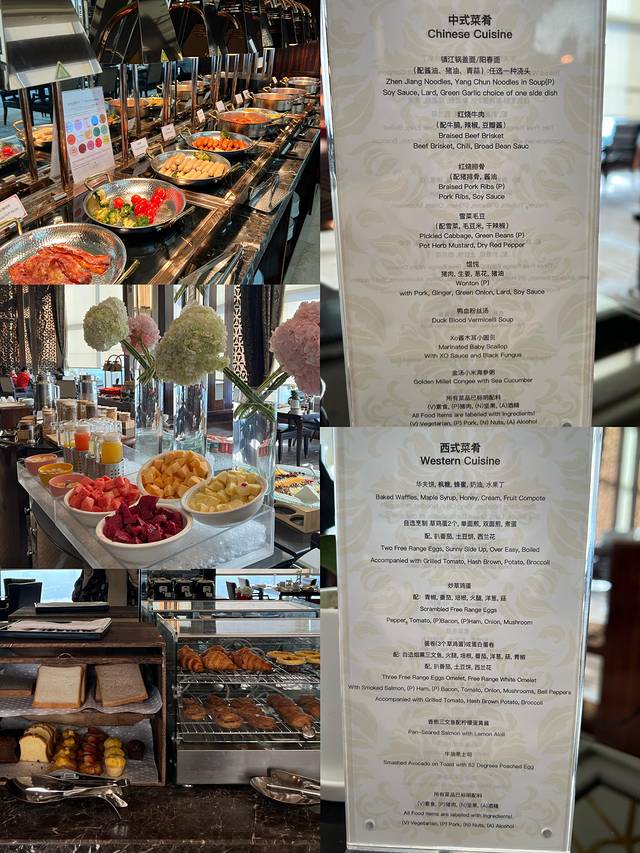 早饭一览。另点的菜单不限量。每份量小,我几天都是把2口大的三文鱼点2份。如果再年轻5岁一定ALL IN !