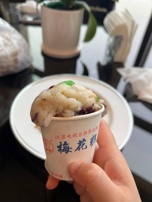 还点了外卖的梅花糕。有点糯,这样1个券后5.5元,整体感觉,不用特别去吃,路过可以顺带~