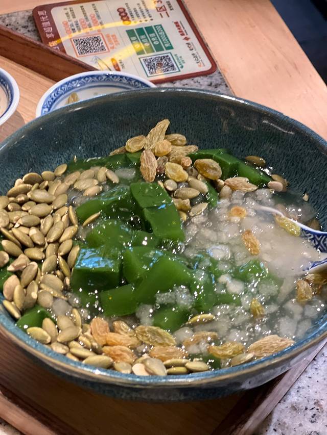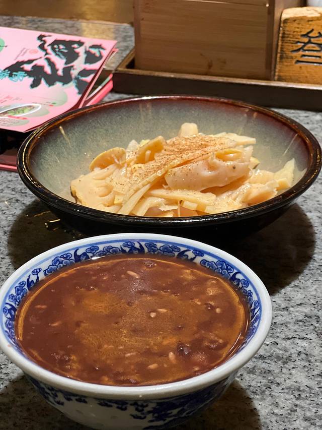 新点的凉拌笋+赤豆小元宵,很合我们口味!