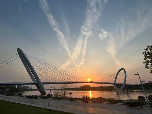 背对夕阳回头看一眼~上桥的走道设计很迂回,看日落的观景廊在桥的东面(往西看日落),但是上桥的走道又在桥的西面