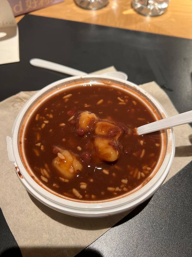 午饭吃得晚,于是晚餐只在附近南京大牌档,打包一份豆沙圆子!PS:几个甜品,打包可以直接买单,不用等号~
